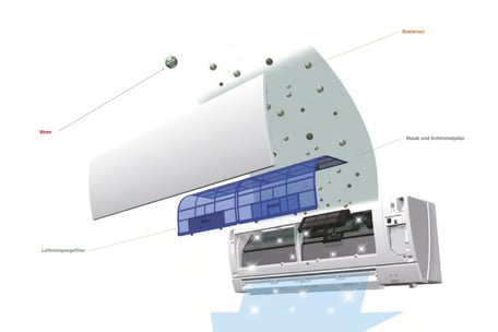Der HEPA-Filter ist direkt vor dem Ventilator positioniert.